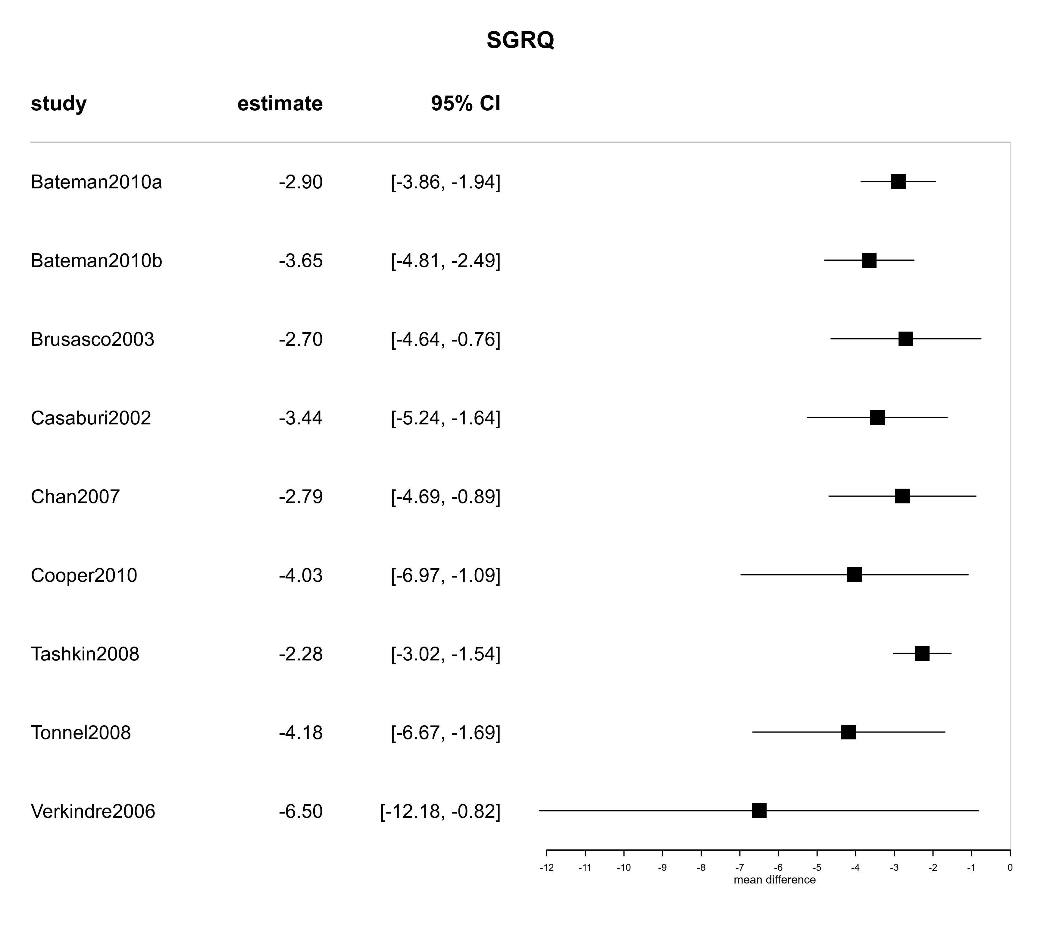 forestplot(karner.sgrq, title="SGRQ", xlab="mean difference")
